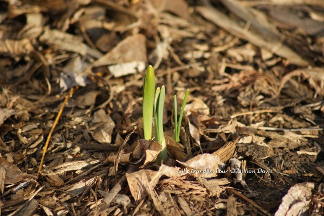 The daffodils I planted last fall are finally poking through the leaves!