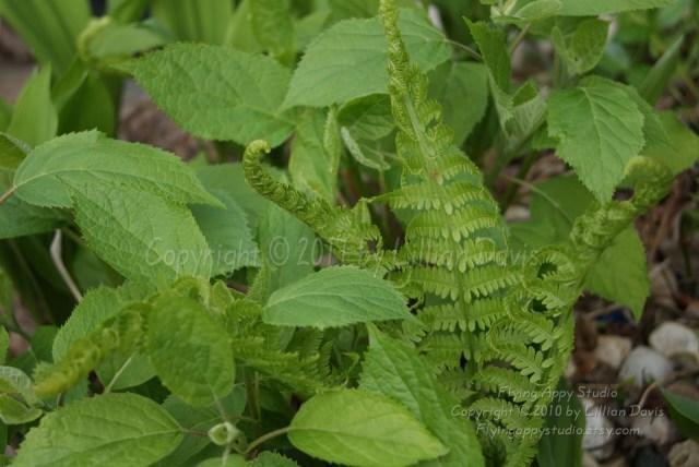 My D and J’s Annabelle Hydrangea and a “gift” fern (ostrich?) .